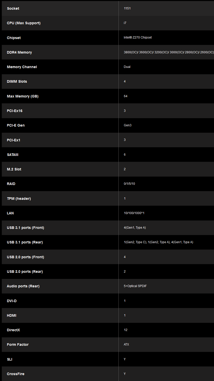 Specification For Z270i Gaming Pro Carbon Ac Motherboard The World Leader In Motherboard Design Msi Usa