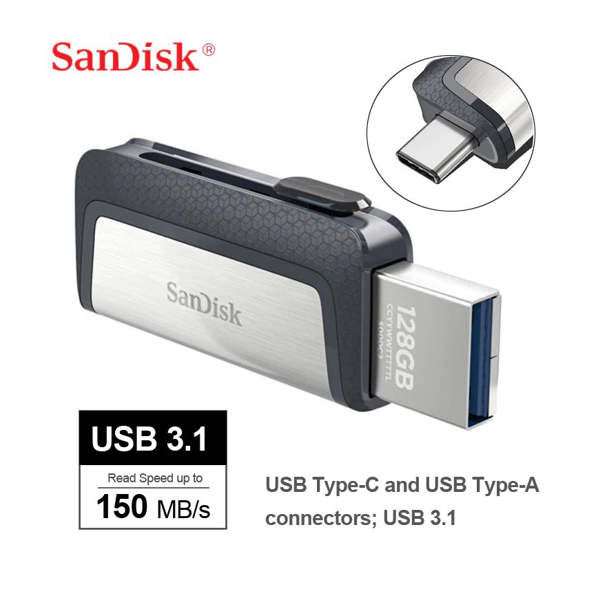 128gb Sandisk Ultra Dual Usb 3 1 Type C Flash Drive